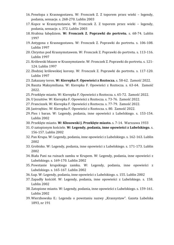 Książki z legendami znajdziecie w wypożyczalni i czytelni Powiatowej Biblioteki Publicznej w Krasnymstawie – warto tam zajrzeć i poszukać inspiracji!